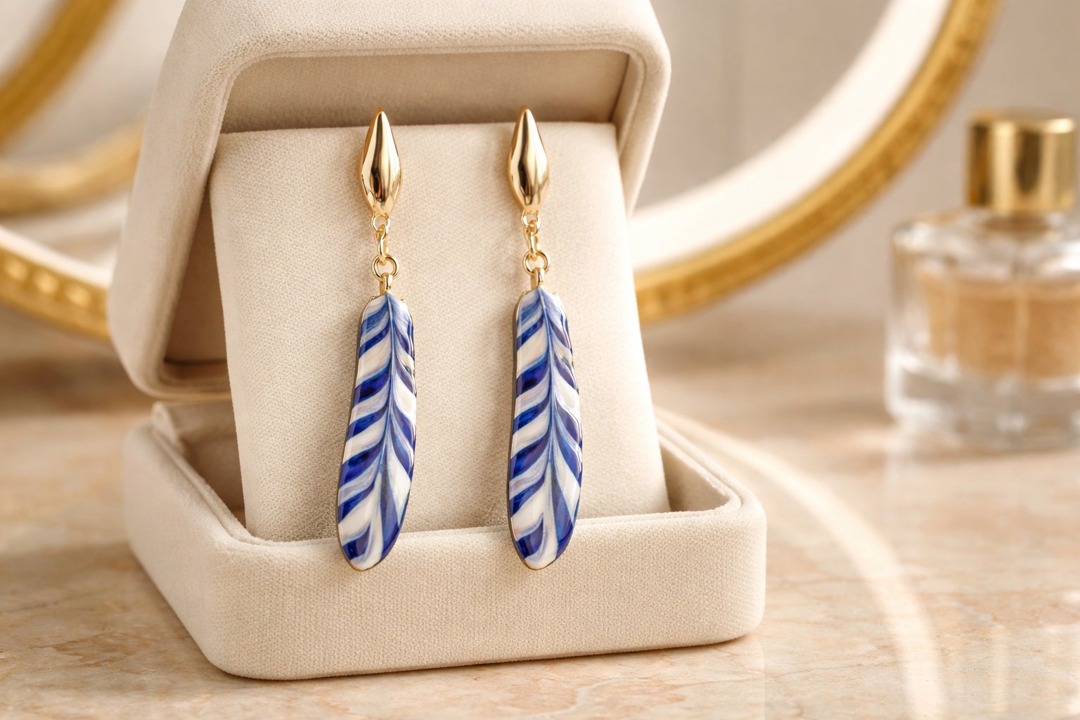 BLUE AND WHITE GOLD FEATHER EARRING