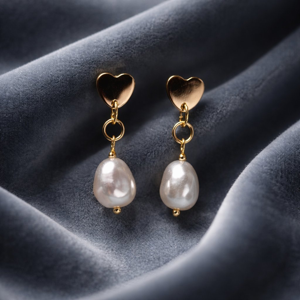 GOLD HEART STUD EARRING WITH A PEARL DROP DANGLE