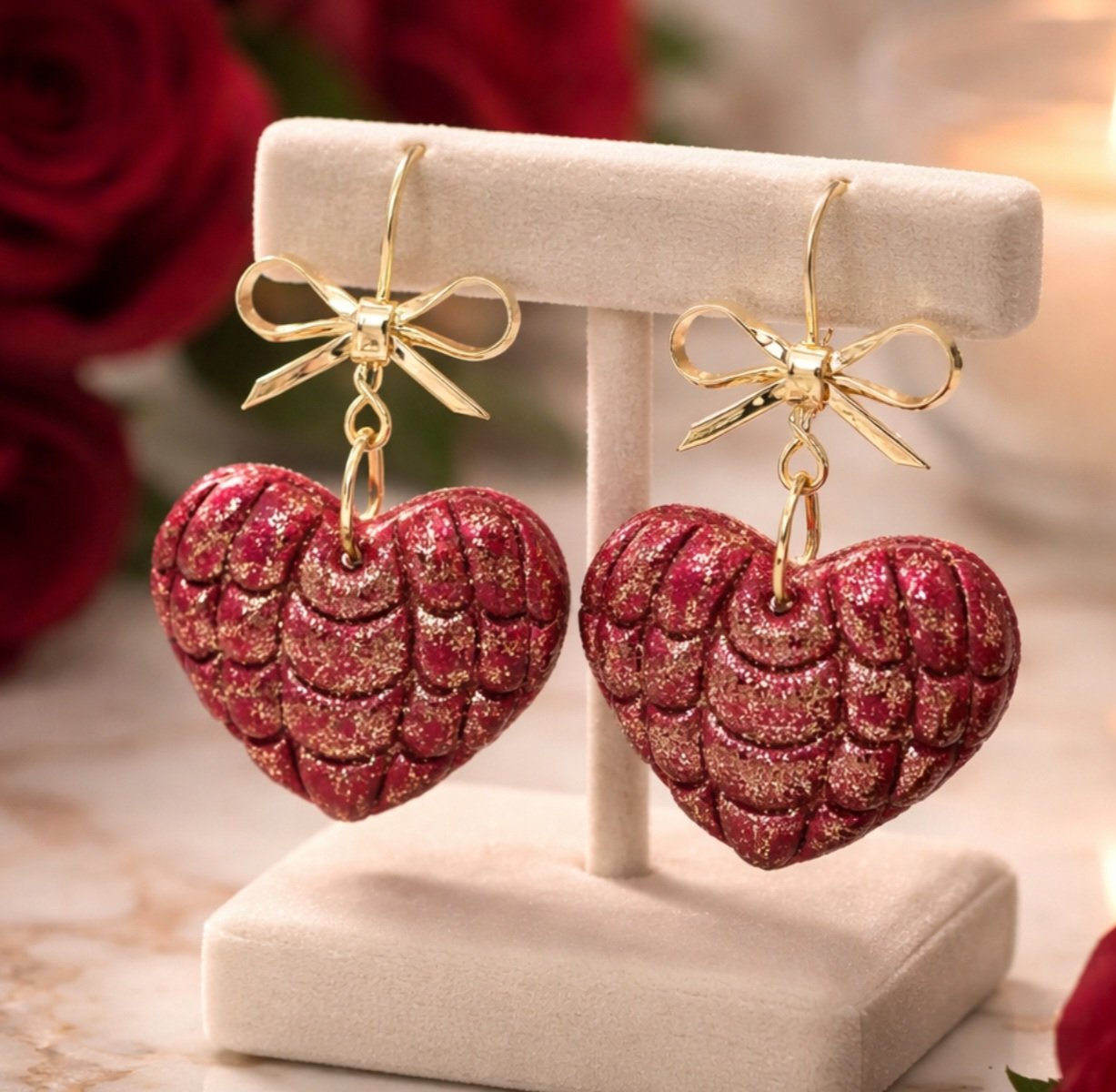 RED CLAY HEART WITH GOLD BOW