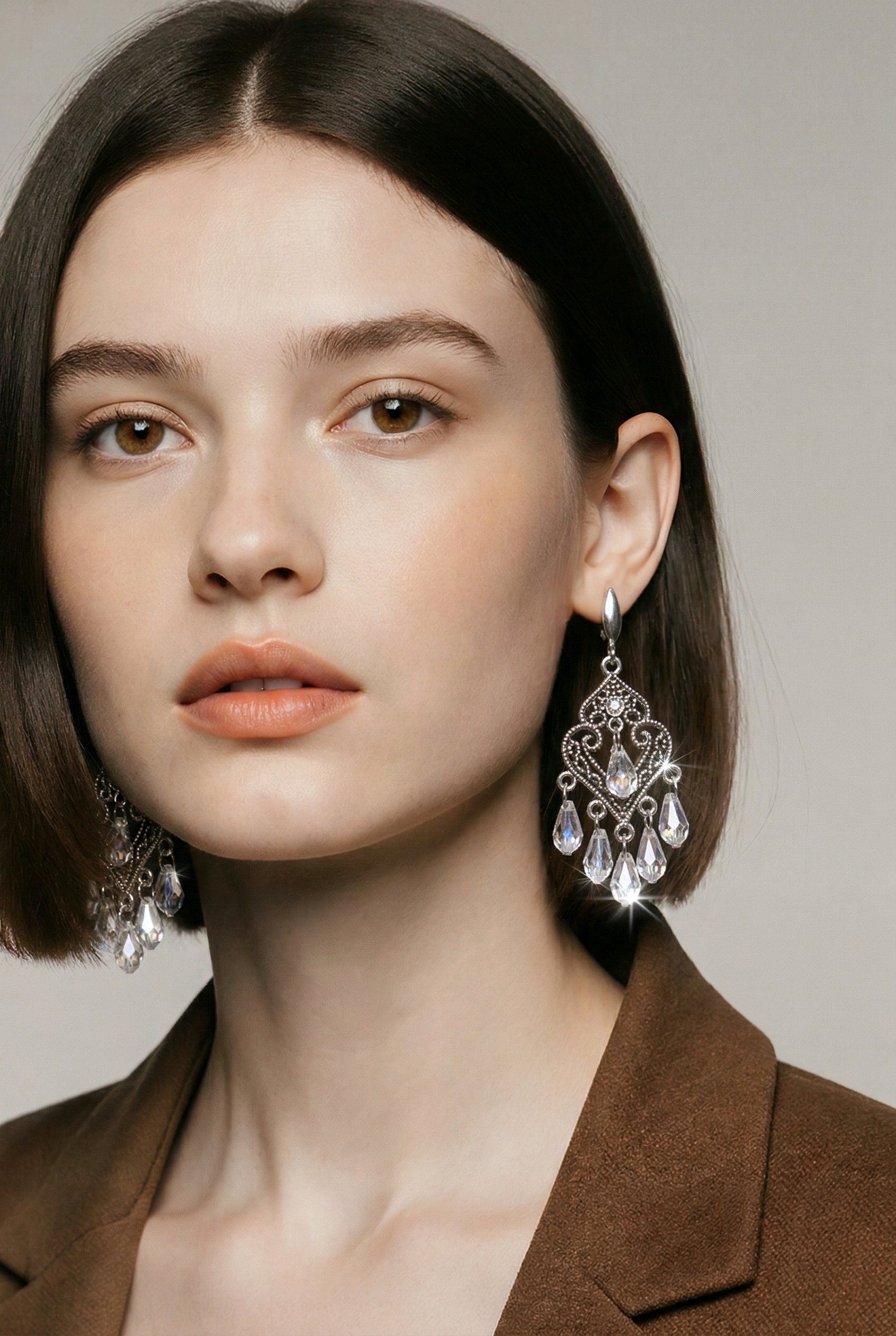 SILVER TIBETAN DANGLE TEARDROP EARRING